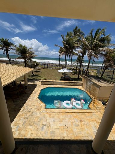 Casa moderna com fino acabamento, de frente para o mar em Vilas do Atlântico, em Lauro de Freitas, Bahia. São 3 pavimentos, compostos de: 1º pavimento - Acesso à garagem coberta para 4 carros, 2 depósitos. 2º pavimento (nível da praia)- 01 suíte, salas de jantar e de visitas, lavabo, varandas, piscina com espaço gourmet, quiosque, gramado de frente para o mar, cozinha com despensa, área de serviços, dependências para funcionários e deposito. 3º pavimento - 5 suítes, sendo uma suíte máster com closet, varanda com um terraço de frente para o mar. Agenda sua visita. Luiz Carlos. CRECI 29341-BA Contato. (71) 99996-6434